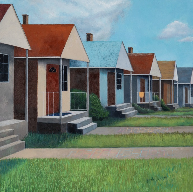 Color came out to play in this neighborhood.  Red roofs, lime-green grasses and rust-colored chimneys remind us of days where sunshine ruled and fun times reigned.